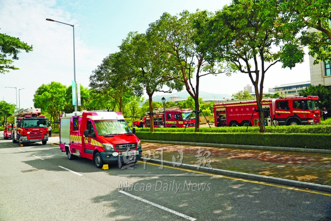 【本報消息】為加強與澳門大學在發生緊急事故時的應變能力及溝通協調,消防局於五月二十七日下午,聯同澳門大學在校內訪客停車場舉行演習。 演習模擬一輛停泊在澳門大學訪客停車場之電動車,在充電過程中因電池過熱引致冒煙起火。保安員發現事故後隨即啟動消防警報,並按下充電樁緊急按鈕切斷電源,而另一名保安員則使用滅火器嘗試撲..