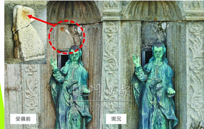 【本報消息】文化局訊:就六月中旬大三巴前地石階發現有石塊落下一事,文化局經過多方面調查及資料比對,初步認為事件屬大三巴立面上方第二層聖像壁龕受到雷電側向擊中所致,後續文化局將進行修復及與專業文保機構研究應對方案。 未對結構造成影響 在本月十二日下午約一時十五分,氣象局發出惡劣天氣及雷暴警告期間,大三..