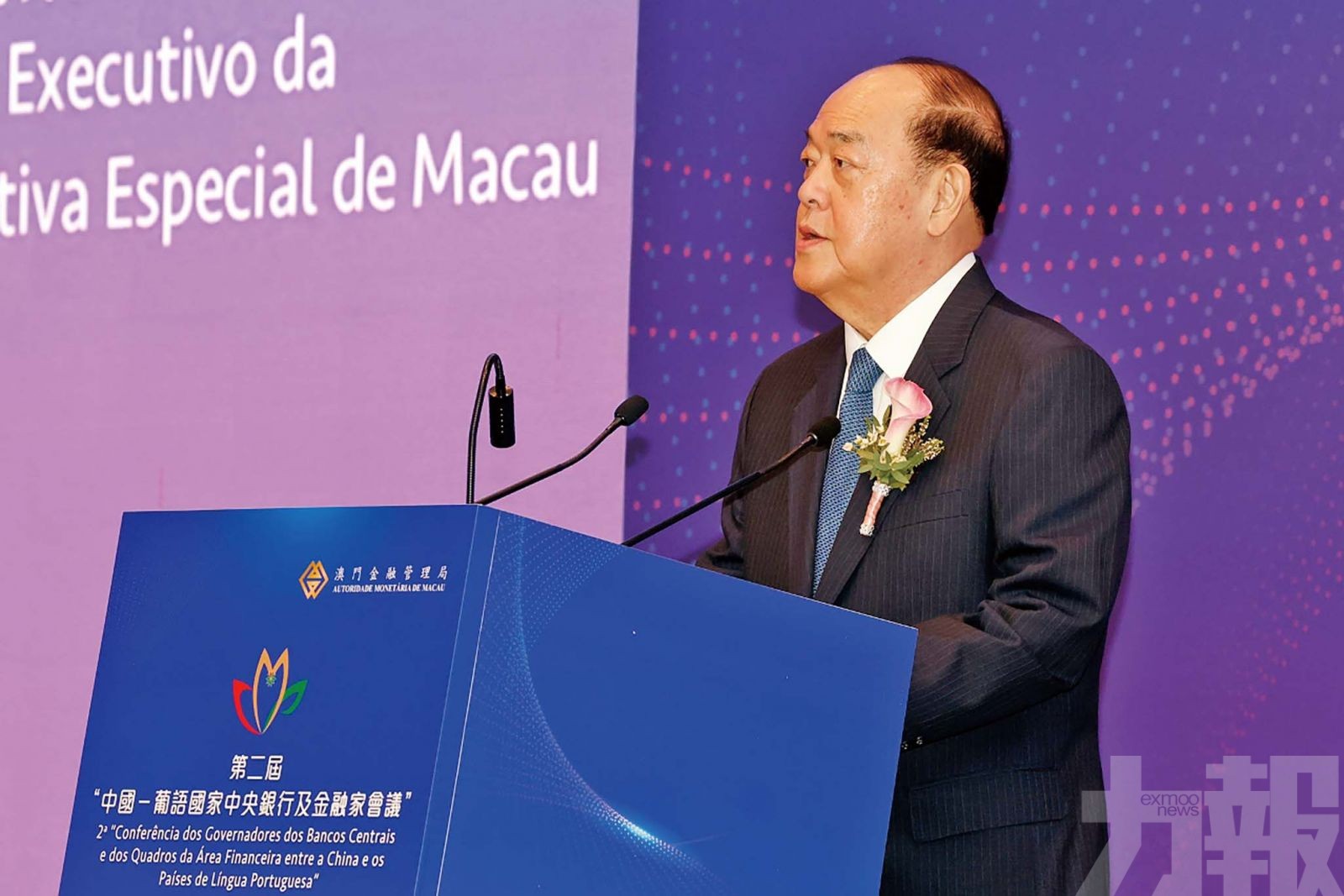 行政長官賀一誠與一眾主禮嘉賓共同主持第二屆中國—葡語國家中央銀行及金融家會議開幕儀式。 (金管局圖片)行政長官賀一誠致歡迎辭。