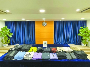 【本報消息】澳門海關訊:澳門海關本月九日對中區一間懷疑售賣侵權服裝的店舖採取行動,查獲侵權服裝產品共二百六十九件,共兩人涉案,已移送檢察院偵辦。