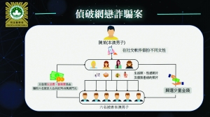 涉案青年姓陳,廿三歲,本澳居民,報稱無業。案情透露,司警去年七月接獲一宗網戀騙案,男事主報稱,二一年透過聊天軟件認識一名“女網友”,並發展成網上情侶。交往期間,女方曾發送多張生活照、病照及受傷照片,訛稱患病、受傷,甚至聲稱遇人不淑,急需金錢墮胎等理由,不斷向其索款,並承諾解決事件後會與其性交作報答。被愛情衝昏頭腦的事主最終向對方提供銀行及網上支付平台帳號,轉帳共約三十五萬澳門元。兩人始終未有見面,直至“女方”失聯後事主才懷疑被騙,報警求助。